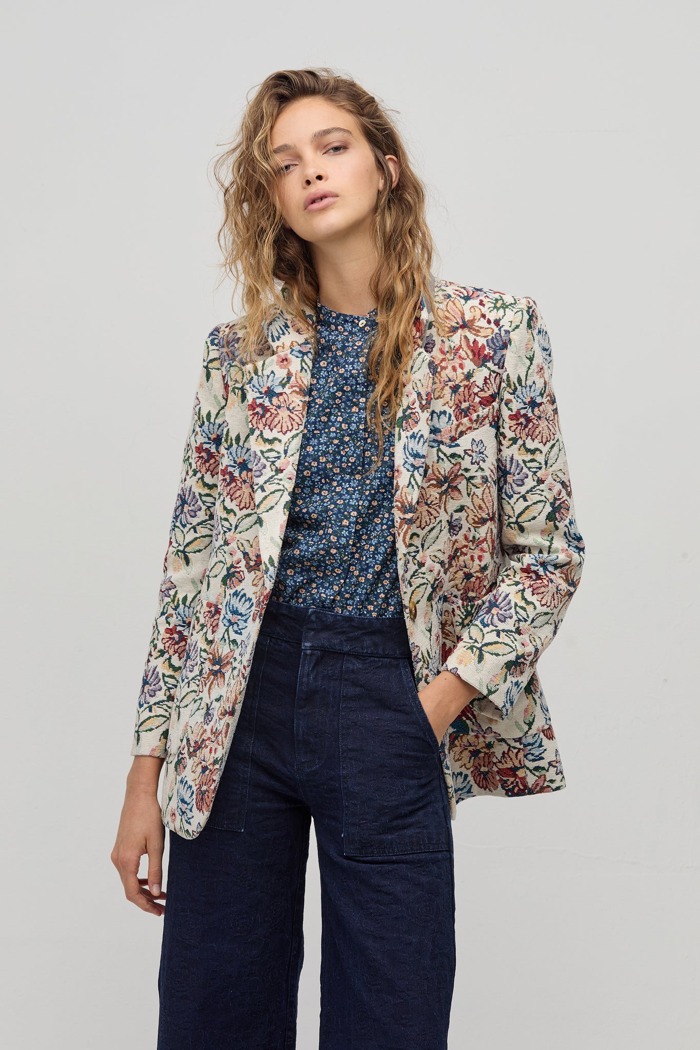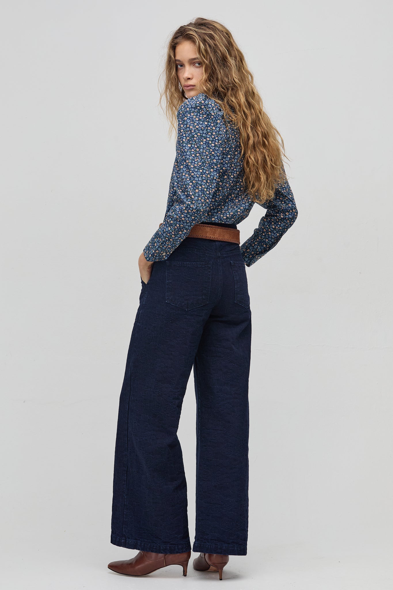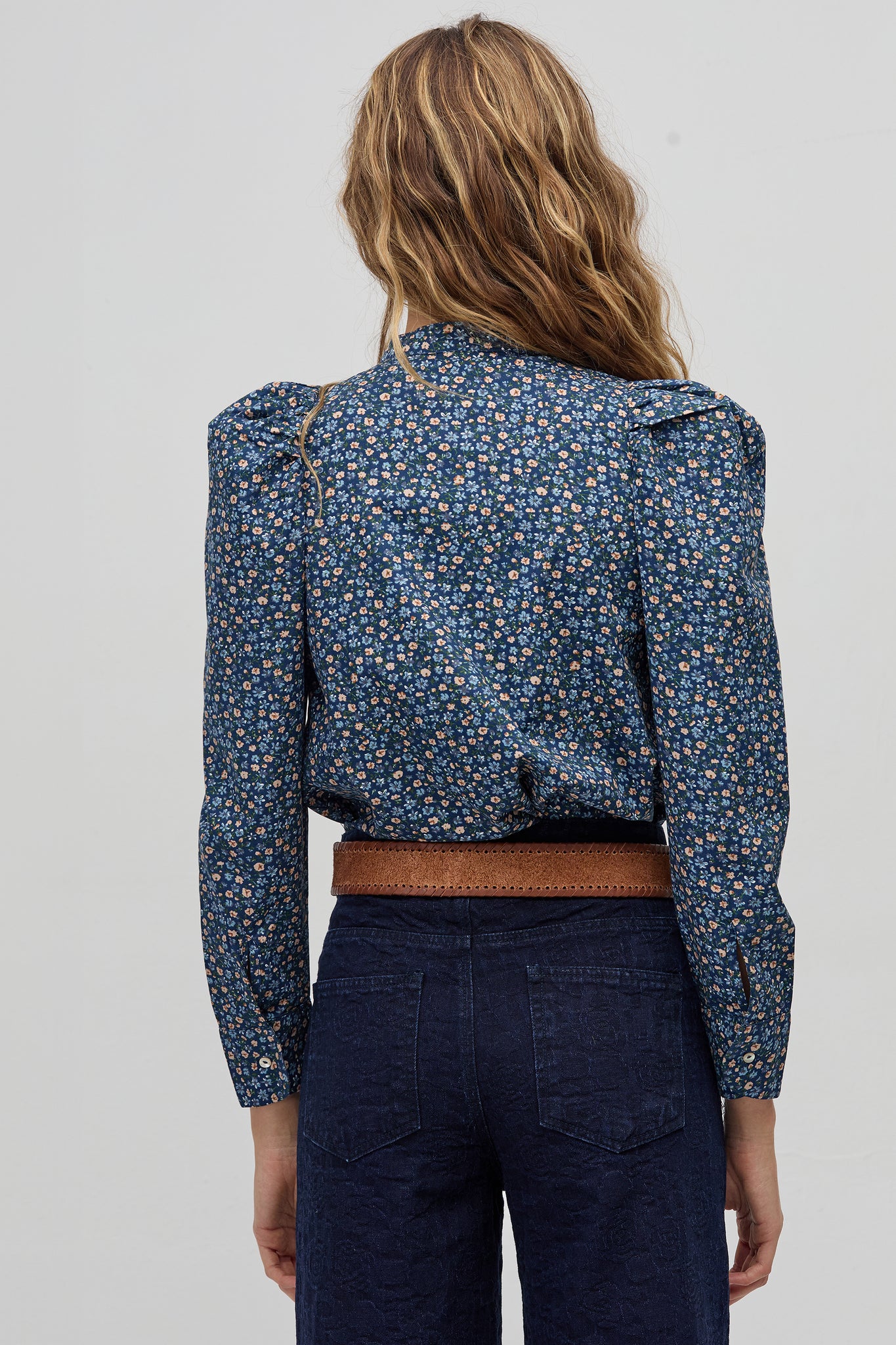Lilium Poplin Shirt - Blue Ditsy Flowers