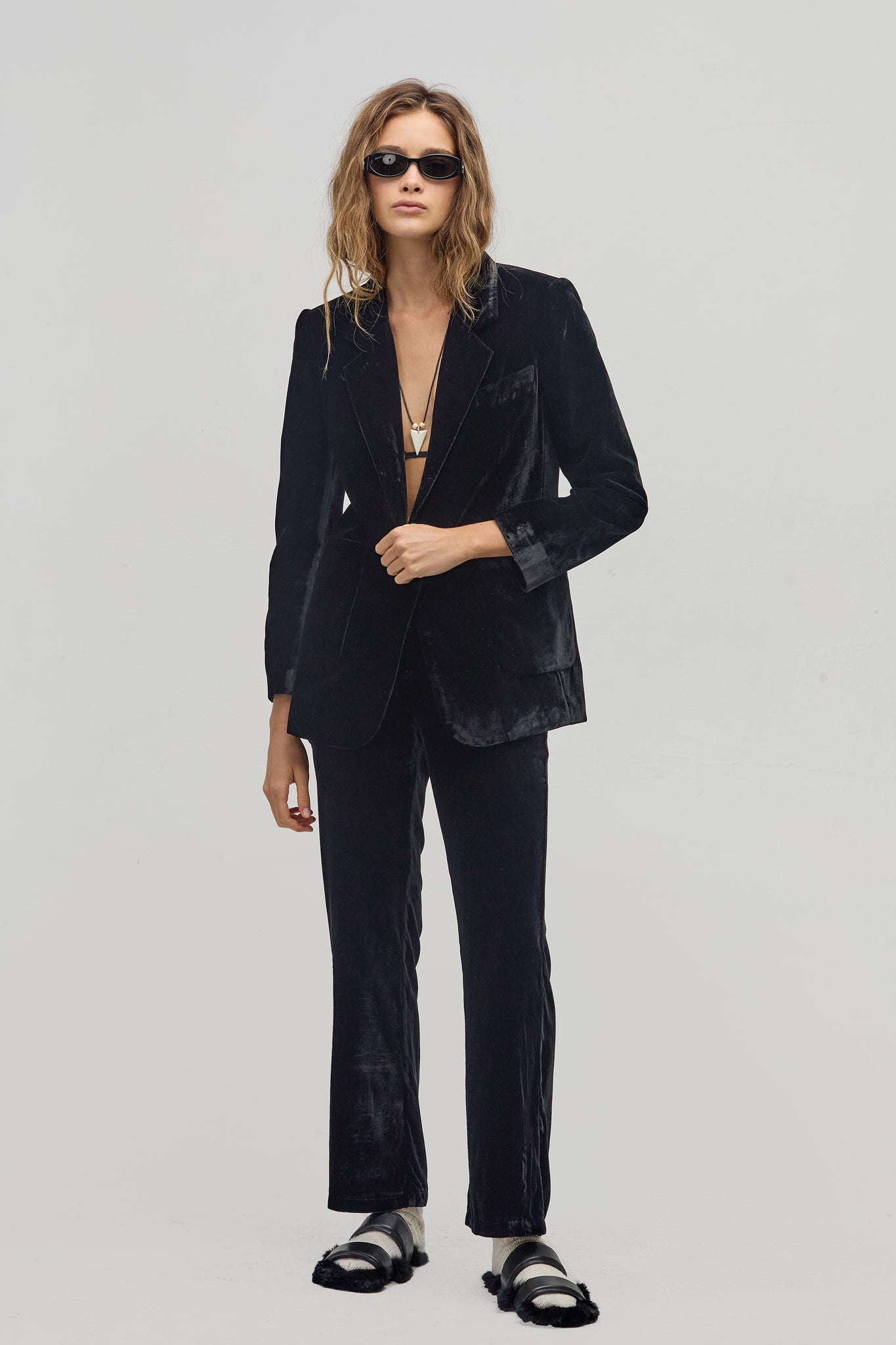 Areia Velvet Blazer - Black