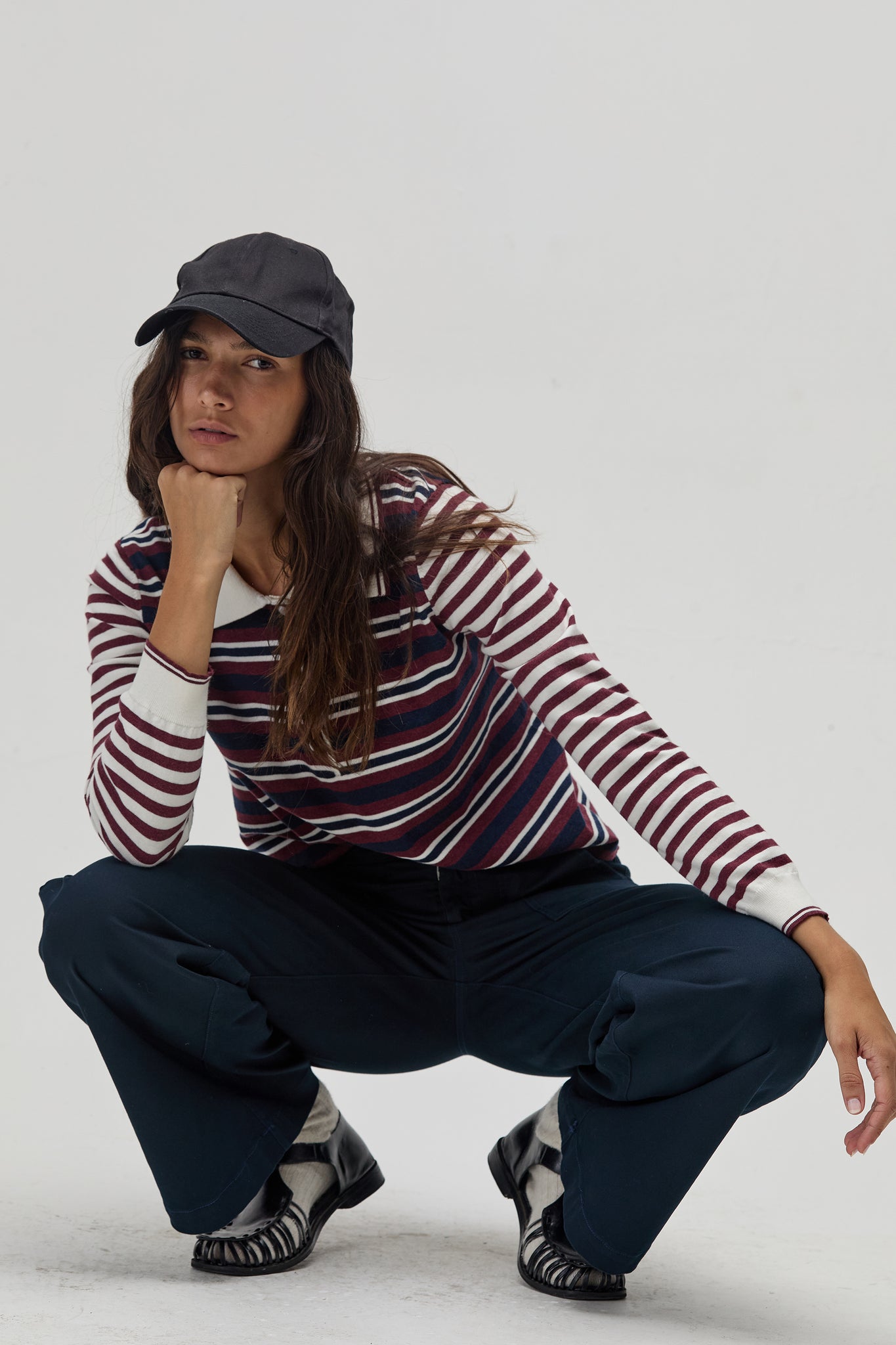 College Polo Sweater - Bordeaux and Navy Stripes