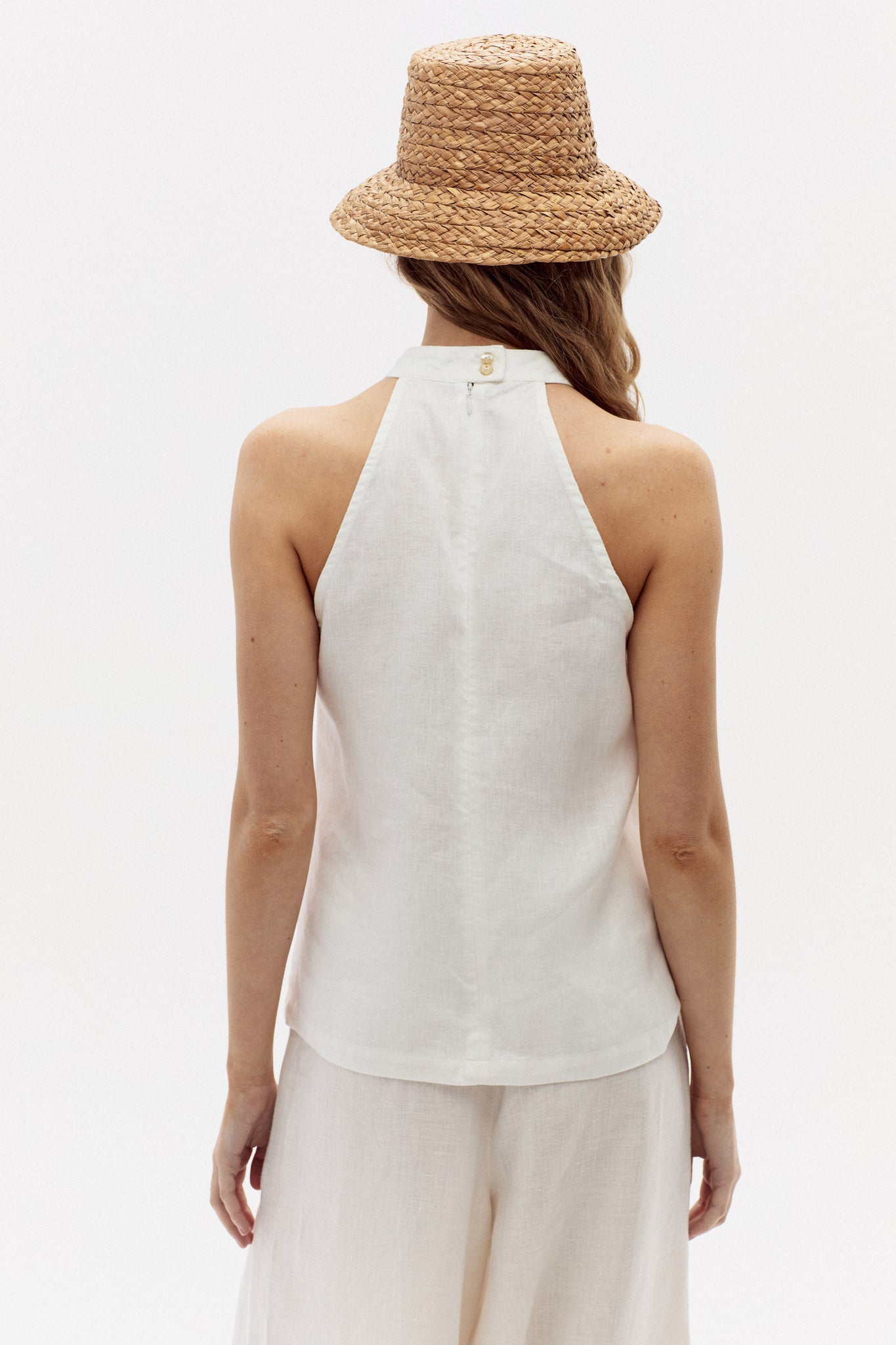 The Olivia halter sleeveless top combines feminine details with timeless silhouettes. It's the perfect top for a day-night occasion.DETAILSHalter necklineA-line shapeSleevelessBack invisible zipper100% Organic linenPre-washed...